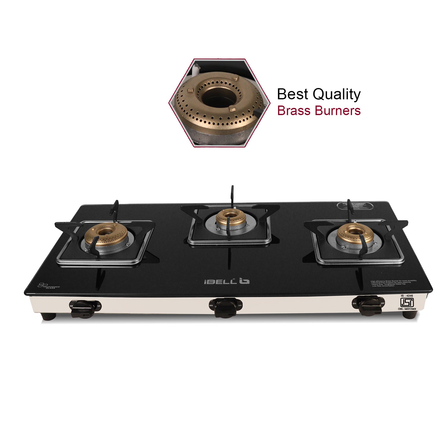 iBELL AGS9413SLM 3 Burner Gas Stove with Auto Ignition, S...