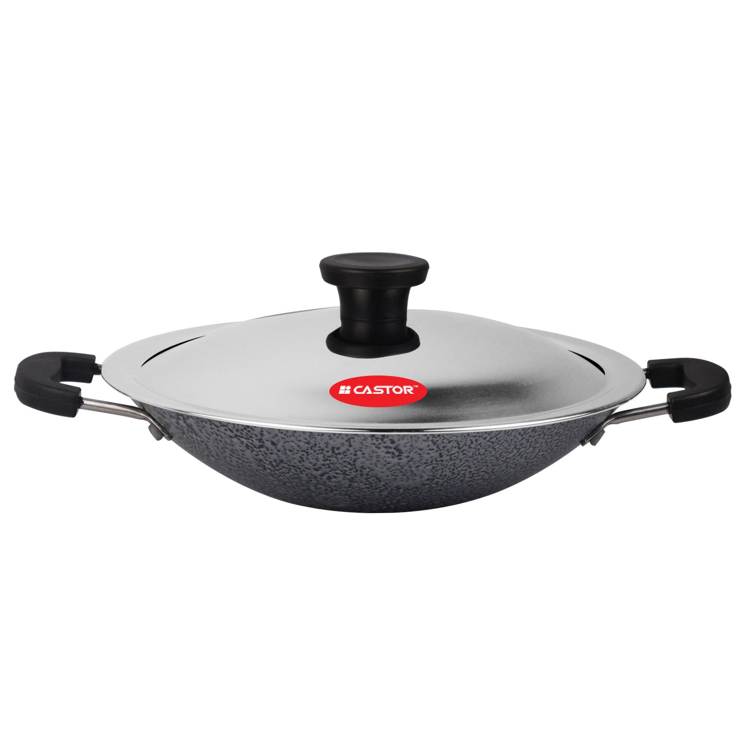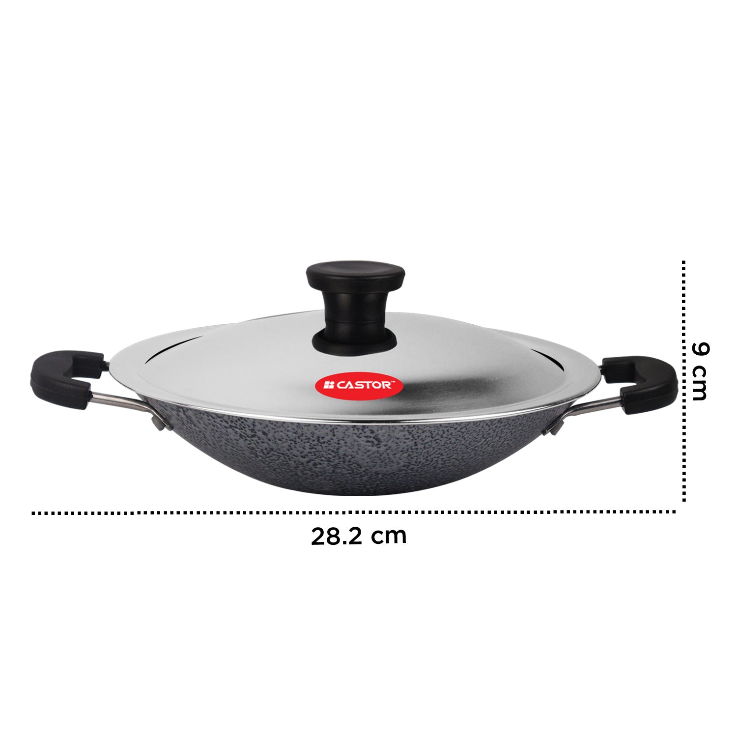 CASTOR iBELL 205 Premium Non-Stick Aluminium Appam Pan with Lid, Appachatty, 200mm, Silver