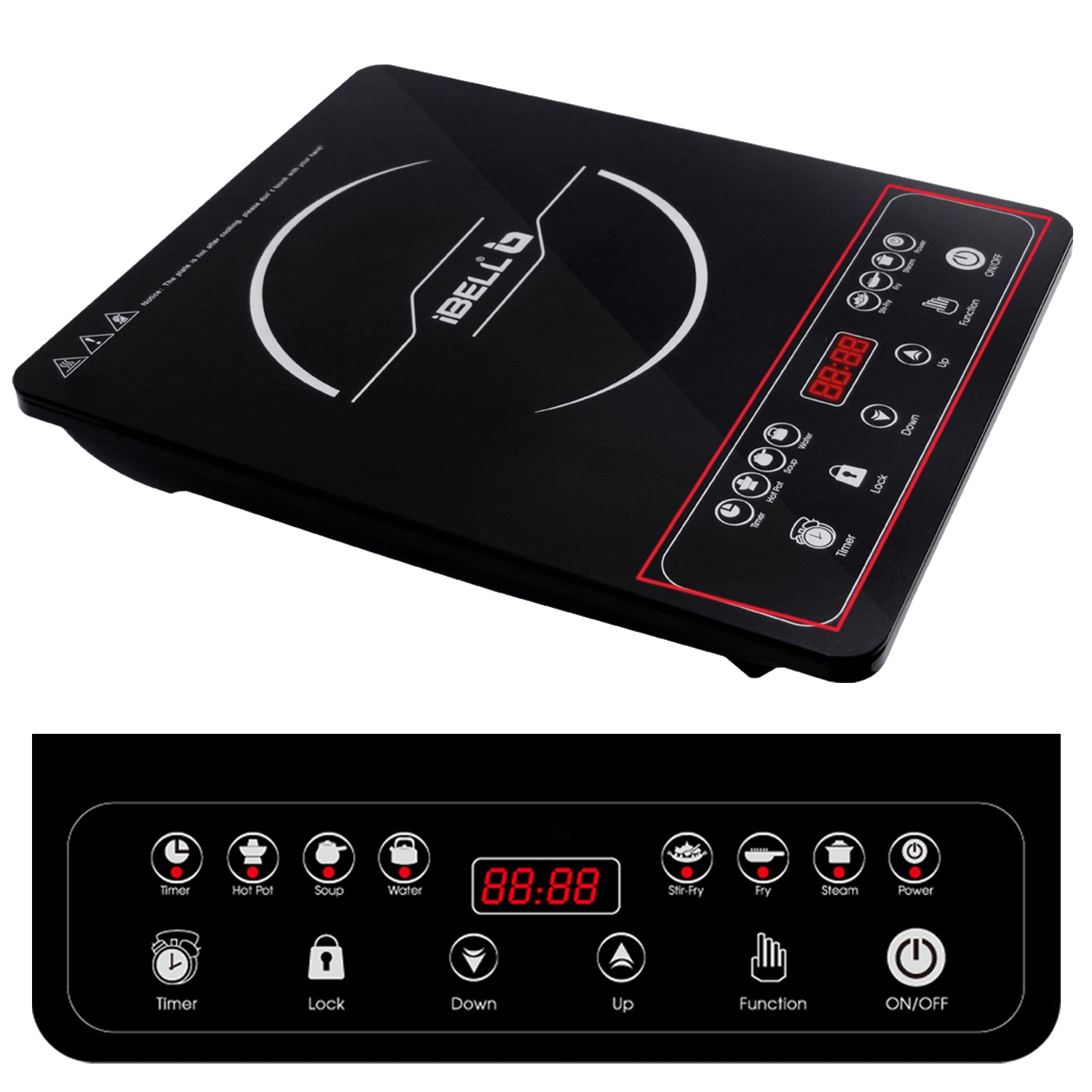 iBELL 20 YO Induction Cooktop 2000W with Full Touch Control, Auto Shut Off and over Heat Protection Black