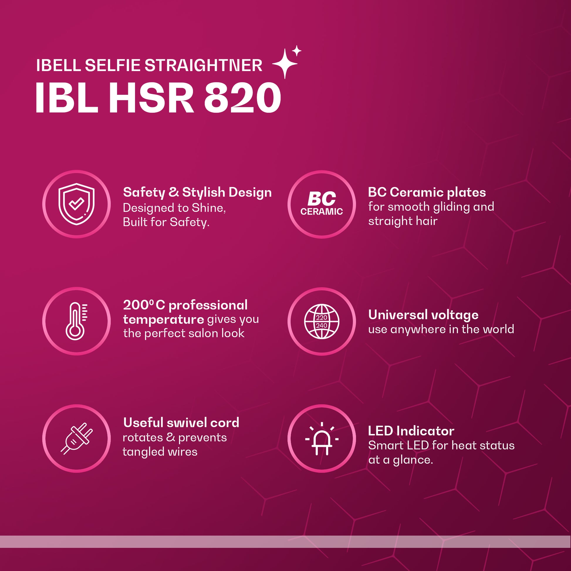 - Safe and Travel Friendly – Features a swivel cord for tangle-free use, LED heat indicator for added safety, and universal voltage for worldwide travel convenience.