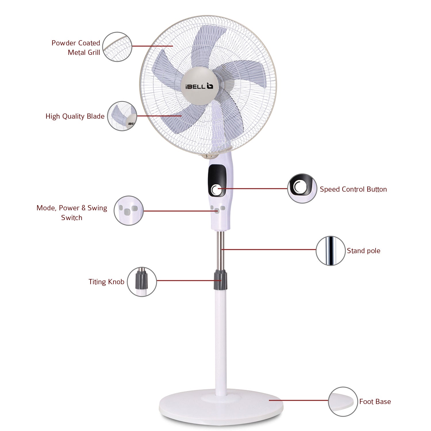 - Powerful Airflow: Experience strong and quiet airflow with our 400mm pedestal fan, featuring 5 durable leaves that provide maximum cooling comfort.