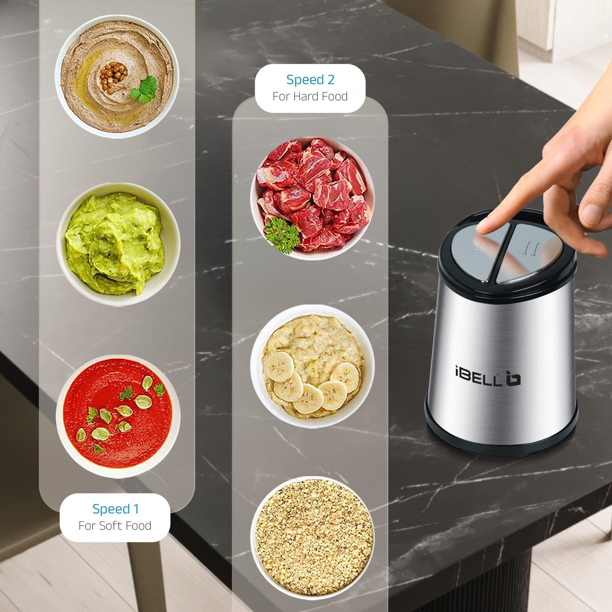 IBELL MT200SM Electric Chopper - 2 Litre Stainless Steel Bowl, 700W, Multi Purpose for Cutting Slicing Meat, Vegetables, Nuts & Fruits (Silver)