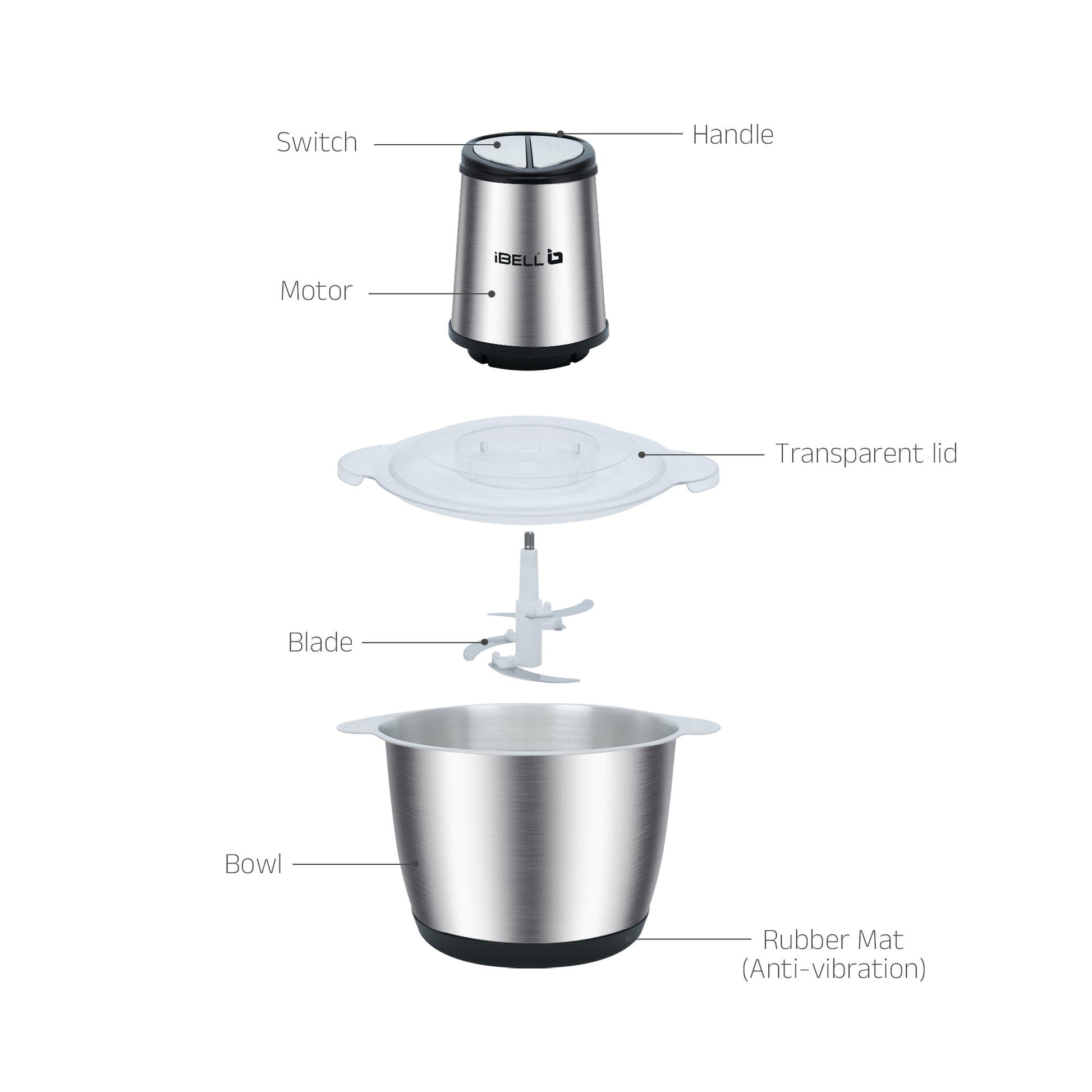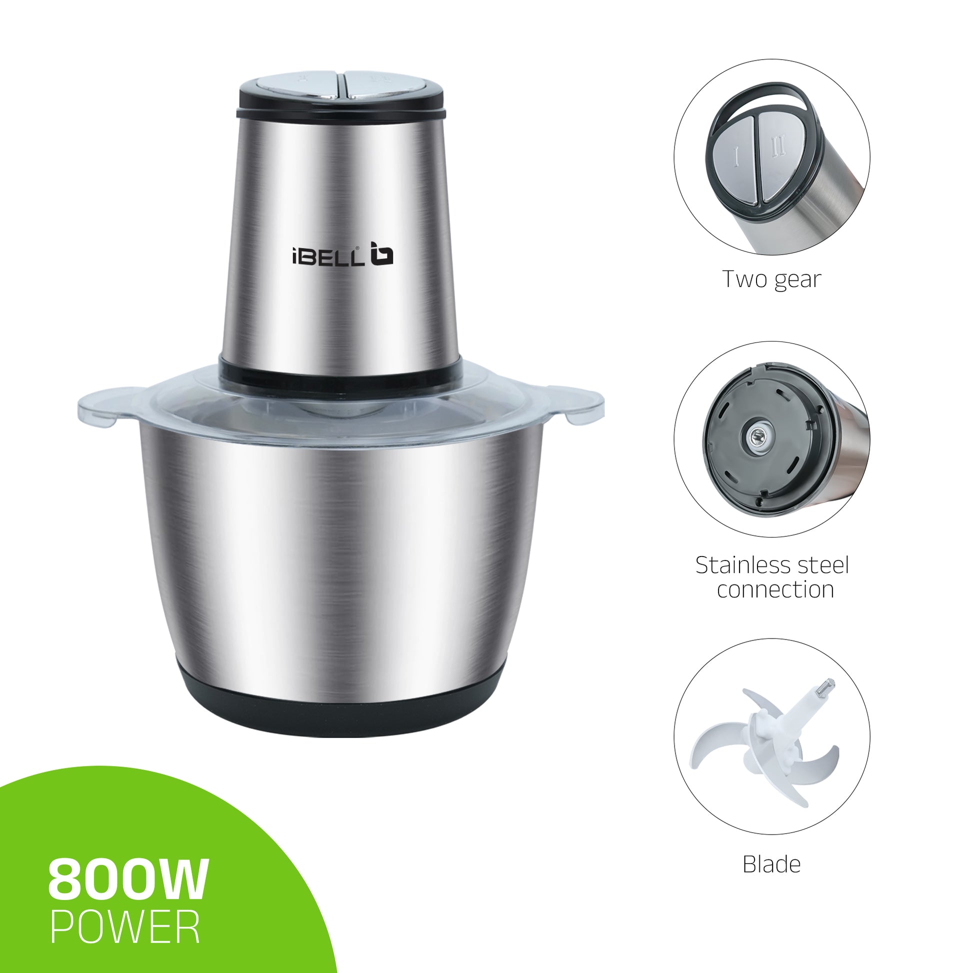 IBELL MT300SM Electric Chopper - 3 Litre Stainless Steel Bowl, 800W, Multi Purpose for Cutting Slicing Meat, Vegetables, Nuts & Fruits (Silver)