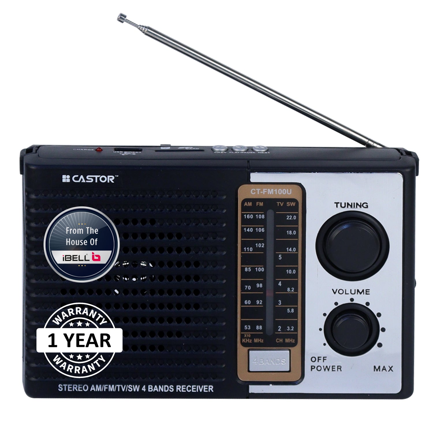 iBELL CTFM100U Portable FM Radio, with USB, SD Card, MP3 Player & Dynamic Speaker 4 Band (Black)