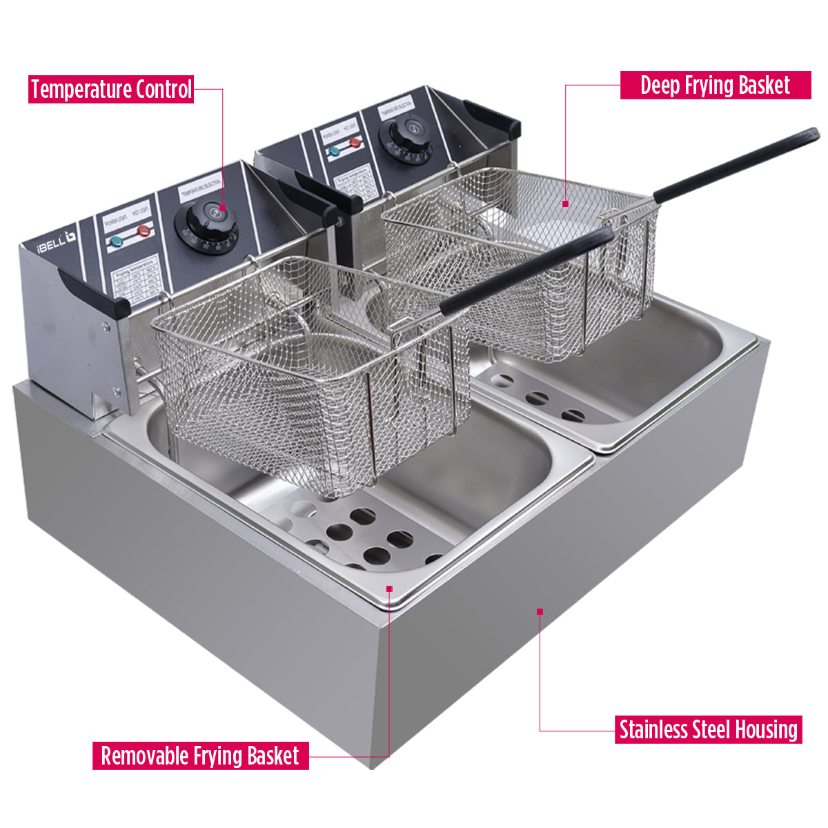 - Dual Capacity Efficiency: 12L double tank/basket design allows for simultaneous frying of two different foods.