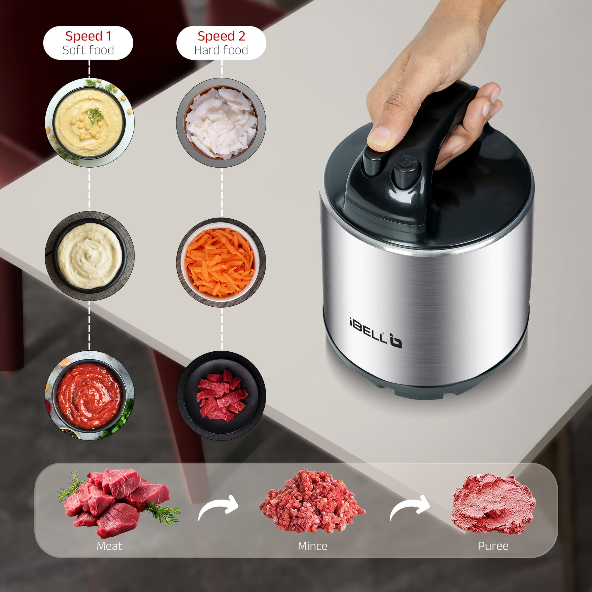 IBELL MT600SM Electric Chopper - 6 Litre Stainless Steel Bowl, 1800W, Multi Purpose for Cutting Slicing Meat, Vegetables, Nuts & Fruits (Silver)