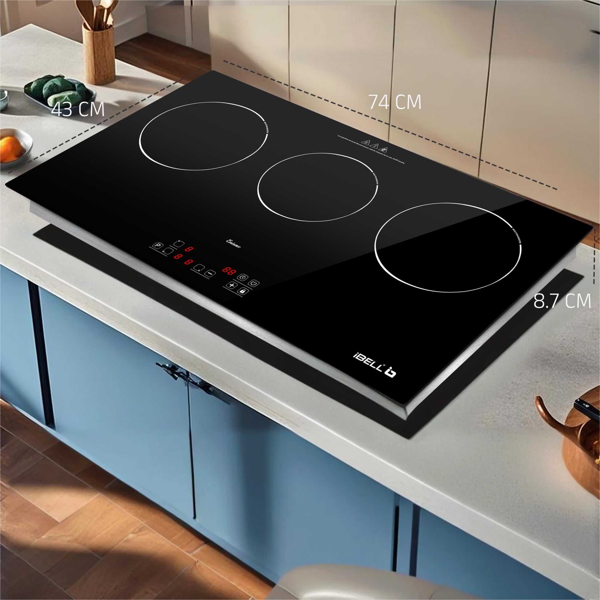 • Electric induction hob with 5600W and 3 heating zones for fast and energy-efficient cooking.