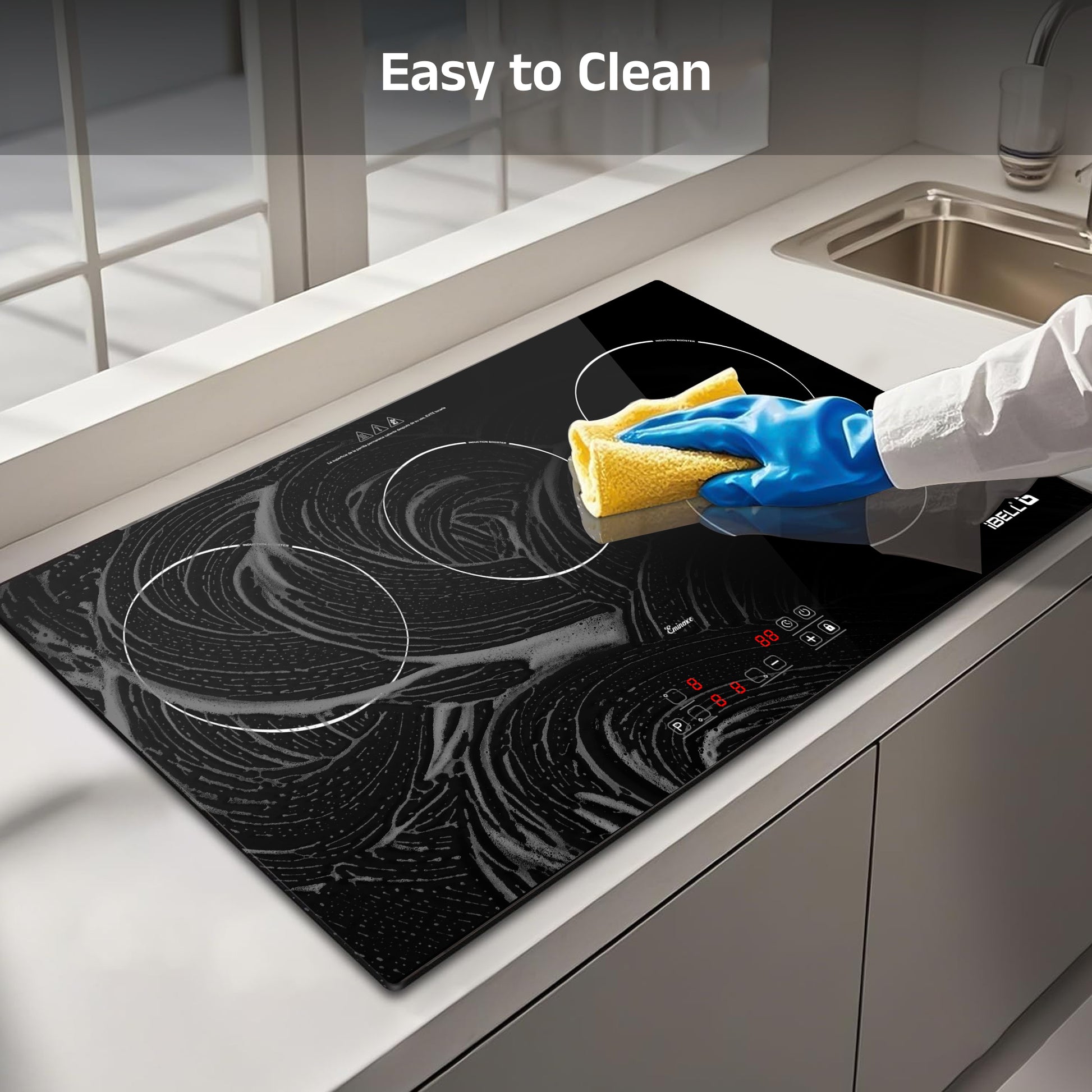 • Toughened glass surface with full touch controls for a modern, ease and convenient cooking