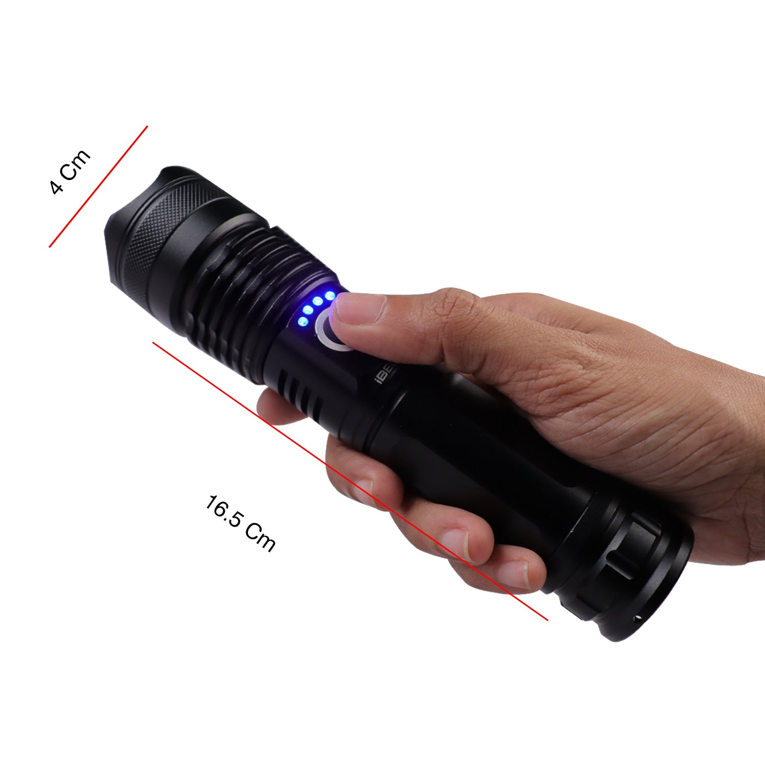 IBELL FL8360S Rechargeable LED Flashlight, Aircraft Aluminum, Telescopic Zoom, Water Resistant, Ultra Long Beam Range with 5 Light Modes (Black)