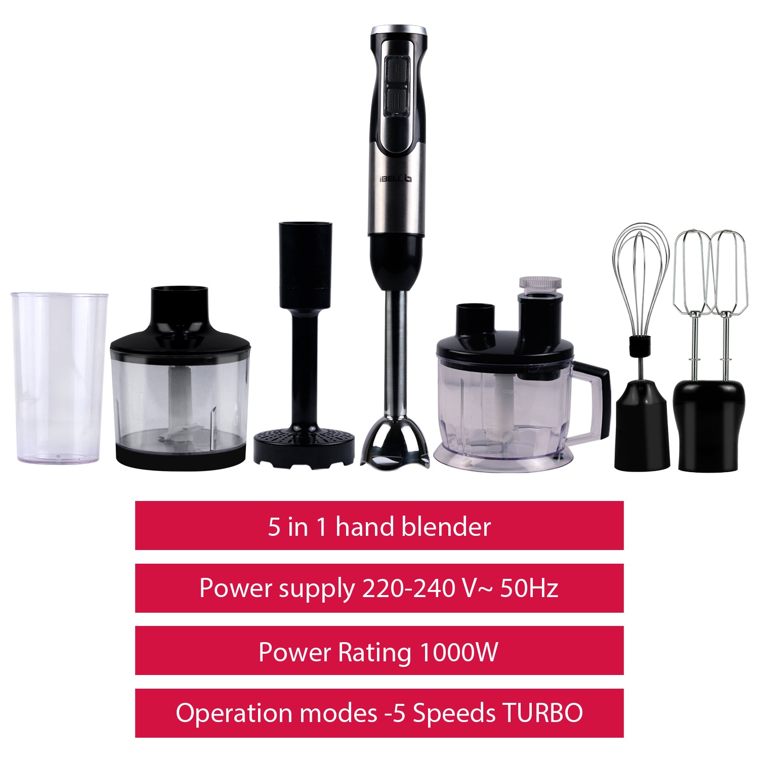 - 6-in-1 Multi-Function Design – Includes whisk, beater, immersion blender, vegetable chopper, slicer, and 600ml container