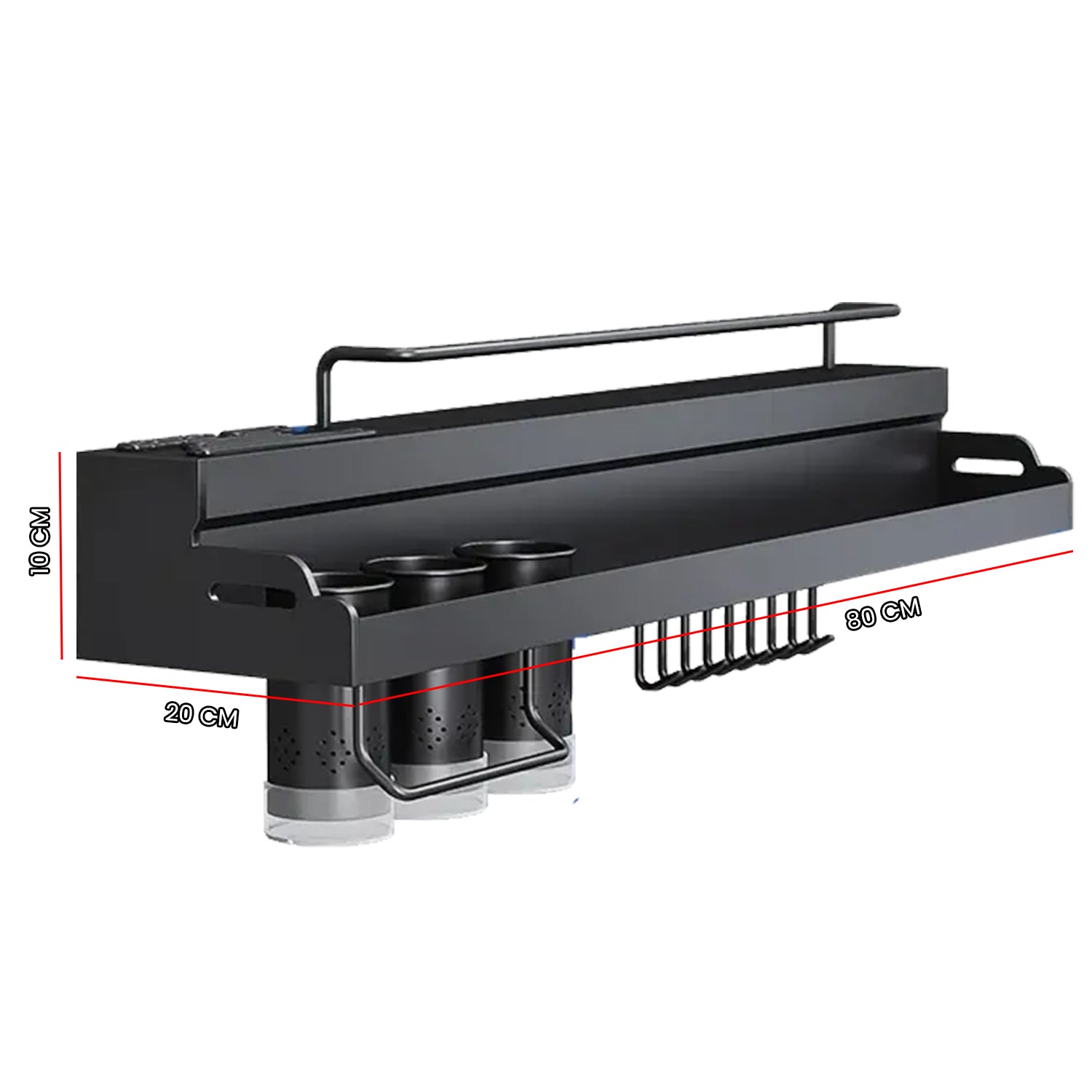 iBELL Multifunctional Wall-Mounted Kitchen Storage Organizer Rack with Spice Shelf, Utensil Hooks & Holder - (IBLDH280)