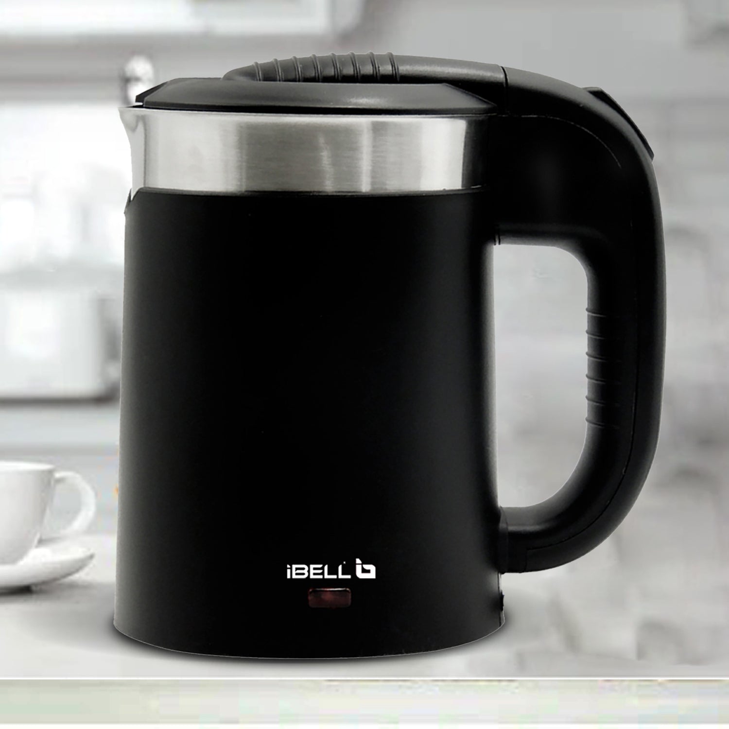 iBELL Sek105Bl Electric Kettle 500 Ml With Removable Lid,950 Watt,Auto Cut Off Function,Stainless Steel With Insulation,2 Glasses Free,Double Wall Kettle (Black),950 Watts,0.5 Liter