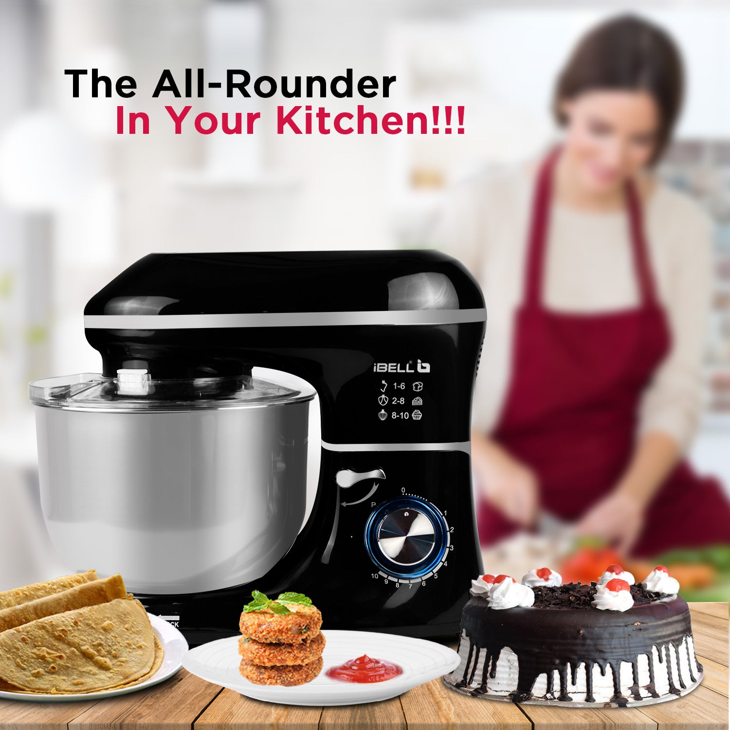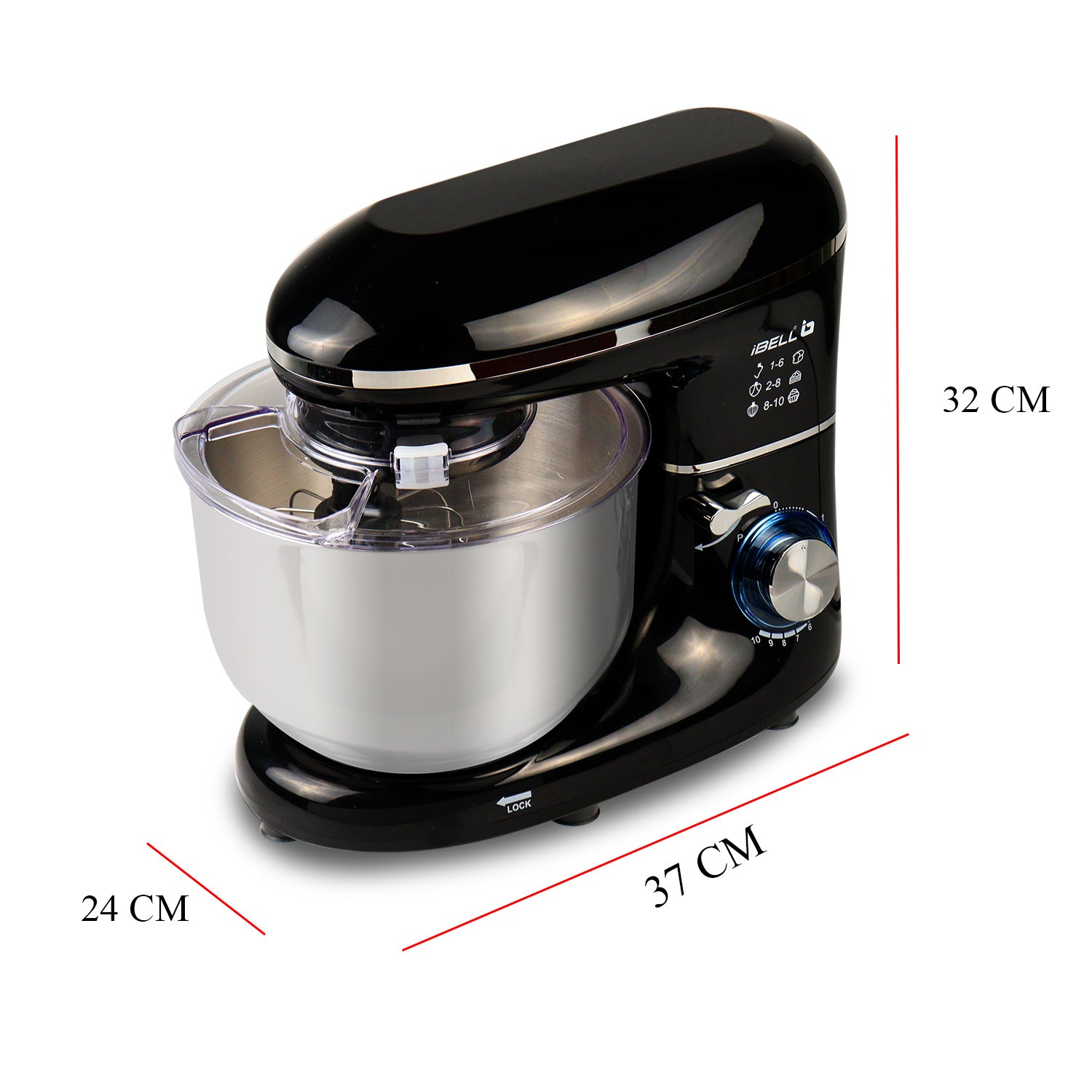 iBELL SM4600S Stand Mixer with Adjustable Head, 1500Watt, 6Litre Stainless Steel Bowl, 6 Speed Control, Multipurpose Mixer for Whipping, Kneading & Egg Beating (Black)