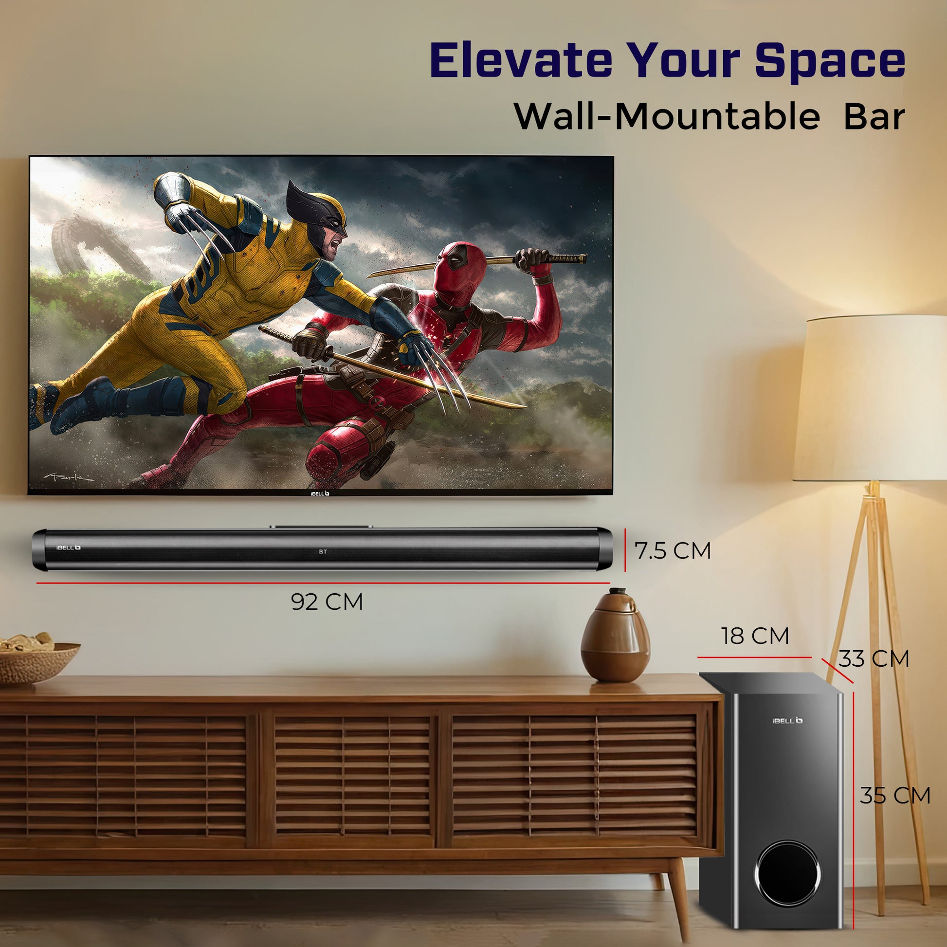 - Wall-Mountable Soundbar : Save space with a sleek 92 cm wide and only 7.5 cm high soundbar that can be mounted neatly under your TV for a clean and modern look.