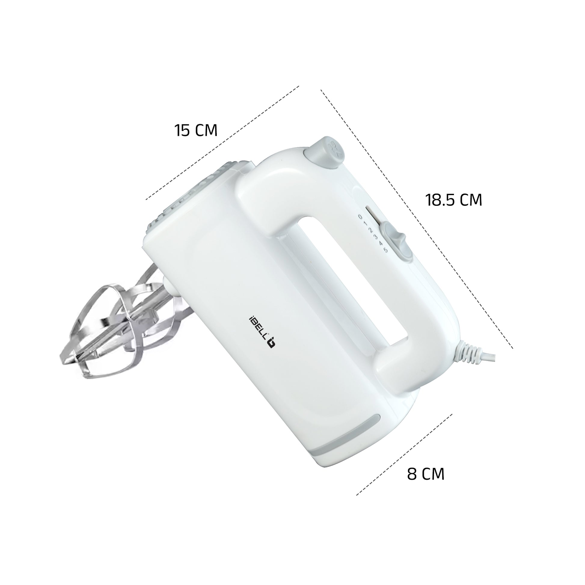 iBELL WHISK350 Electric Hand Mixer - 350W with 5 Speed Control, Stainless Steel Beaters & Dough Hooks for Baking, Whipping & Mixing (White)